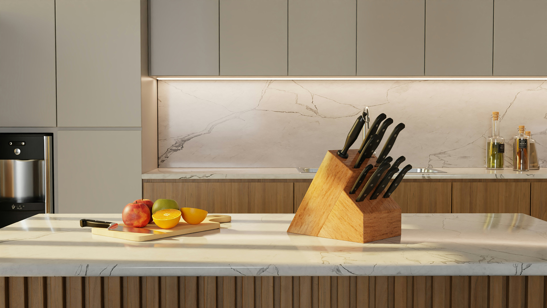 - Kompakt design: Knivblokken kan placeres under lave køkkenskabe.